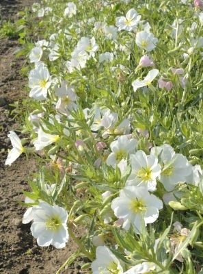 Nattljus, en bra dragväxt med stora vita blommor.Ett- till tvåårig.Utvecklingstid ca 90 dagar vid tidig sådd och förkultivering.Vid direktsådd 60-70 dagar.Stora härliga vita blommor med lite gult i centrum. Blommor får med tiden en viss rosa ton. Överblommat är rosa.Mörkgröna blad.Starkast doft kvällstid.Växer ganska lågt och något utbrett.Trivs att växa i torrt läge.Blommar länge, men inte varje blomma.Höjd 40-50 cm, vidd 80 cm.