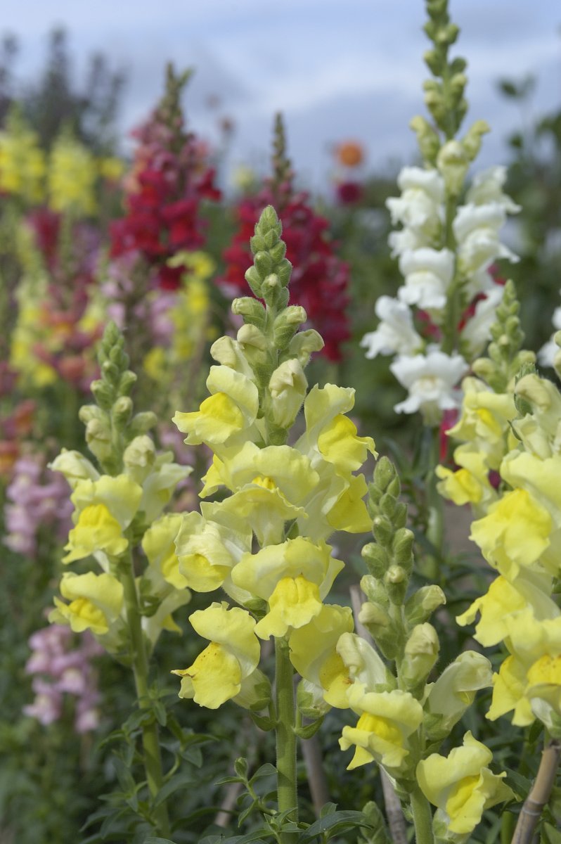Lejongap i blandade färger.Bästa sort för snittblomsodling där långa kraftiga stjälkar önskas.Ettårig.Blommar efter ca 100 dagar.I vindutsatta lägen kan stjälkarna behöva stöttas.Höjd: 70-90 cm