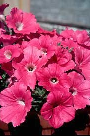 Petunia i brilliantrosa. Fortunia Wave-serien ger kraftigvuxna plantor med meterlånga skott.Blommar efter ca 80 dagar och länge.Blommorna är ca 6 cm i diameter.Detta är en av de bästa utplanteringsväxterna.Oerhört rikblommig, tålig för vind och blåst. Tål t.om. lättare frost.Pelleterat frö