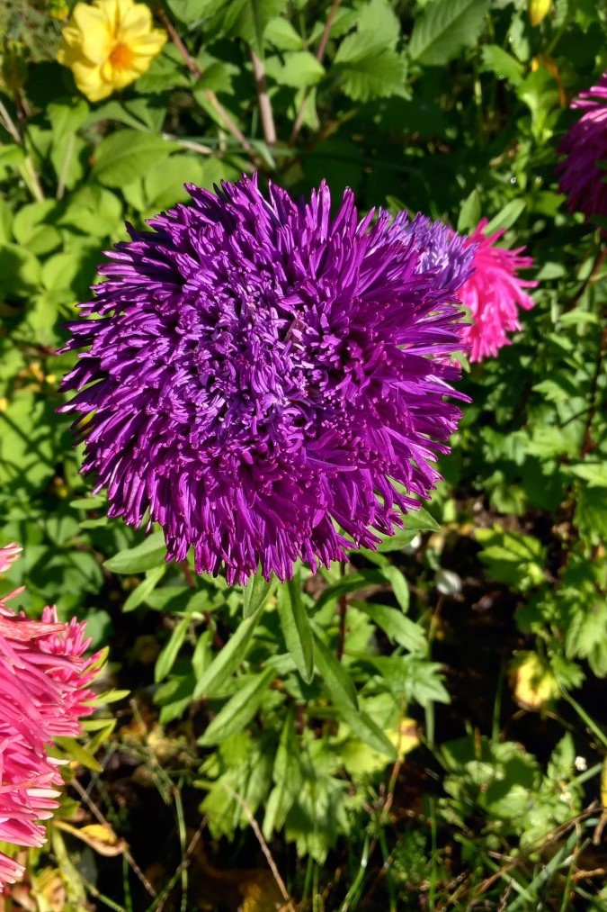 Krallen-Aster, en storblommig aster som blommar sent in på hösten. Bra som snittblomma.Ettårig.Dubbla, täta blommor, ca 10cm i diameter.Lila platta blommor som liknar krysantemum, håller länge som snitt.Växten blir ca 50 cm hög.Trivs i mullhaltig och välgödslad, gärna sandblandad jord i öppet och soligt läge.