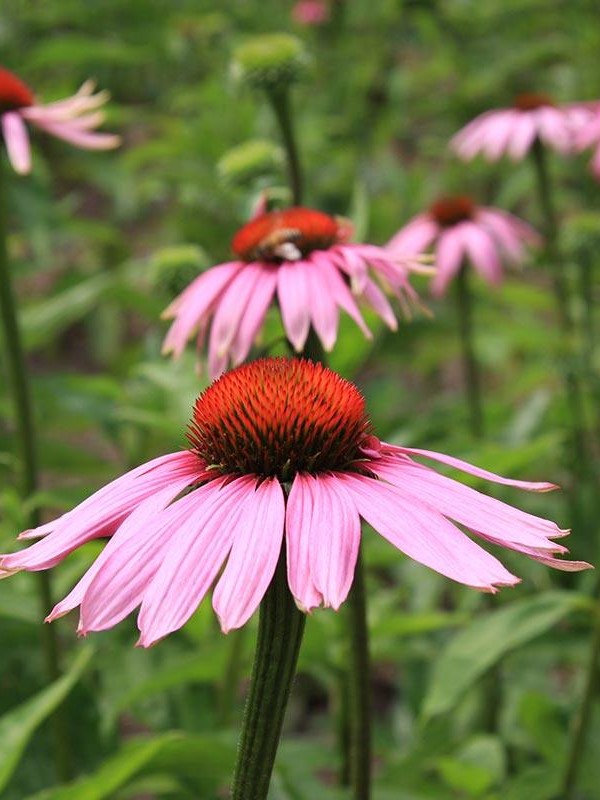 Solhatten är en flerårig rabattväxt och odlas också som snittblomma.Med sina ståtliga blommor på höga stjälkar blir växten omtyckt av pollinerare i trädgården.Röd solhatt odlas som medicinalväxt där man utvinner ett extrakt ur växten som lindrar bla förkylning.Kan bli upp till 110 cm hög.