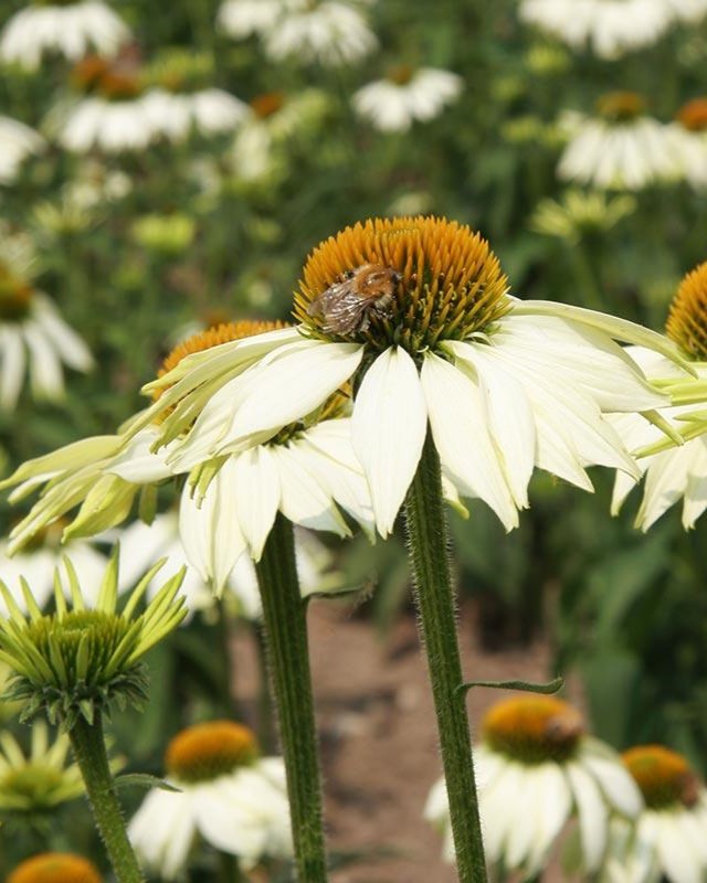 En vit solhatt som både pryder rabatten och som passar till snittblomma.Kan även användas som medicinalväxt.Flerårig, blommar andra året. En rik nektar källa för pollinerare.Odlas med fördel i soligt läge.Blir 90-110cm hög.