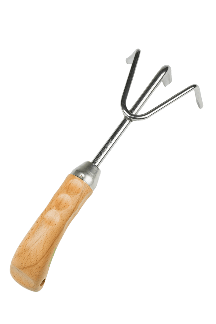 Ett verktyg i rostfritt stål och ett ergonomiskt handtag av trä.